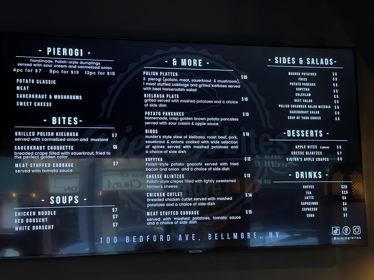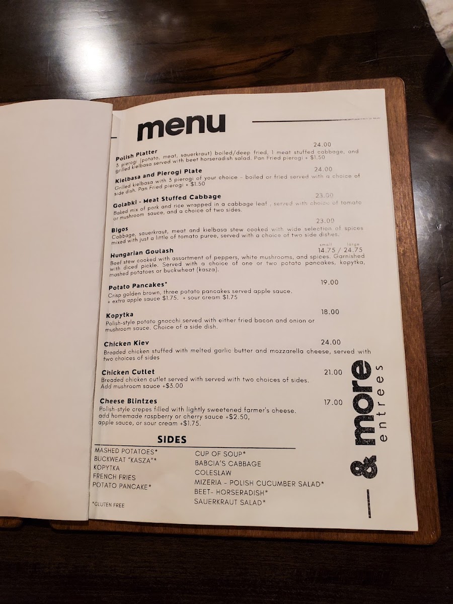 3 pierogi (potato, meat, sauerkraut) boiled/deep fried, 1 meat stuffed cabbage, and grilled kielbasa served with sampler of beet horseradish spread, mustard and sour cream. Pan Fried pierogi + $1.50